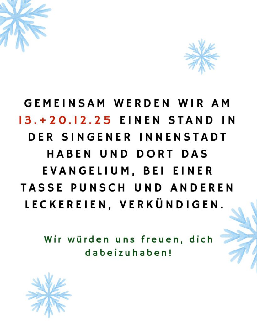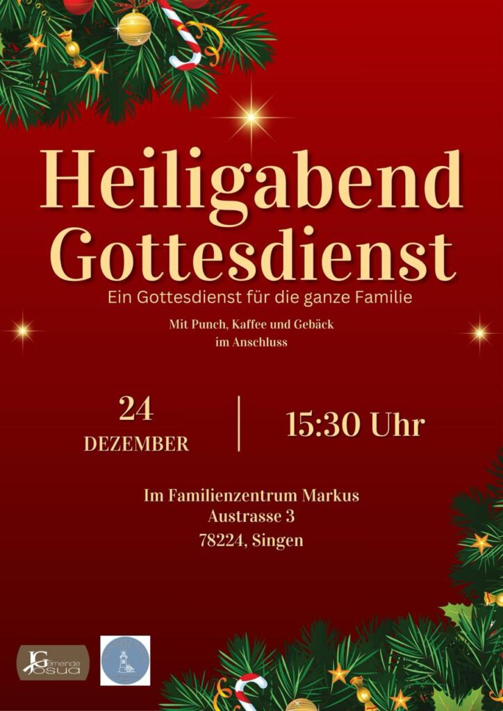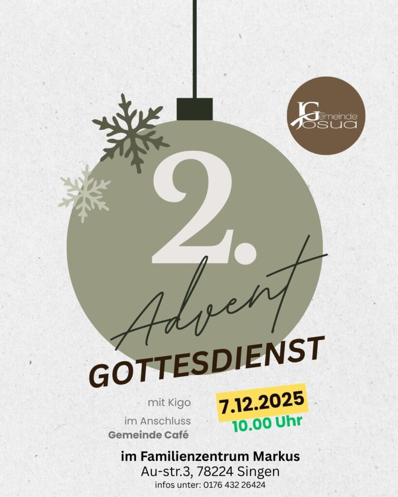 Unseren nächsten Gottesdienst feiern wir am kommenden Sonntag 7.12.2025 um 10.00 Uhr im Familienzentrum Markus, Au-str.3!
