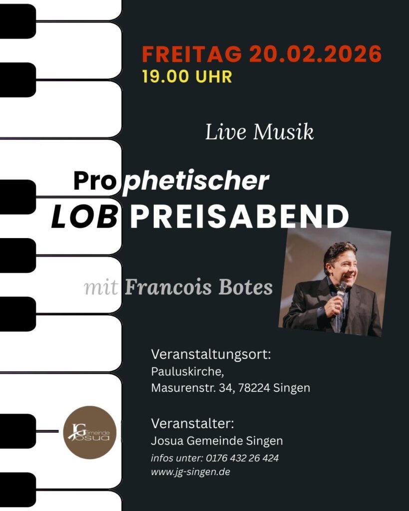 Lobpreisabend mit Francois Botes am Freitag 20.02.2026 um 19.00 Uhr in der Pauluskirche, Masurenstr.34.