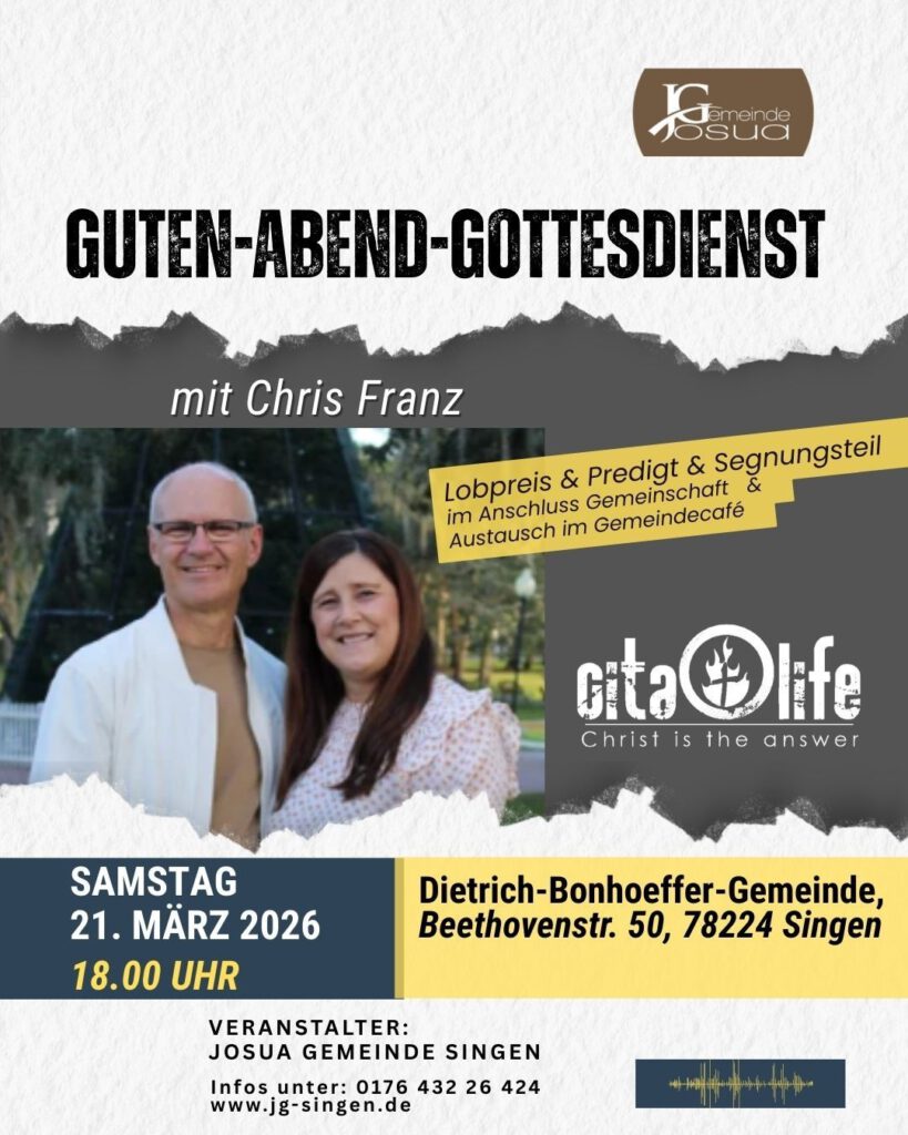 save the date: Samstag 21.3.2026 Guten-Abend-Gottesdienst mit Chris Franz