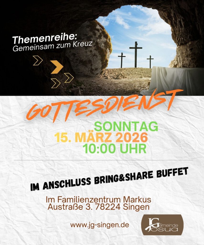 Unser nächster Gottesdienst findet am Sonntag 15.03.2026 um 10.00 Uhr im Familienzentrum Markus, Au-str.3, 78224 Singen statt!